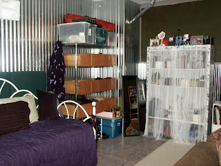 The other one just has too much stuff to take the sheers down, but I think I'll go out and get some fabric soon, maybe some curtains or something. Its also worth noting that both of those shelving units are Tela's, not mine... I appreciate the loan.